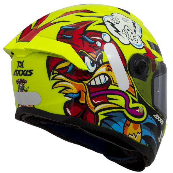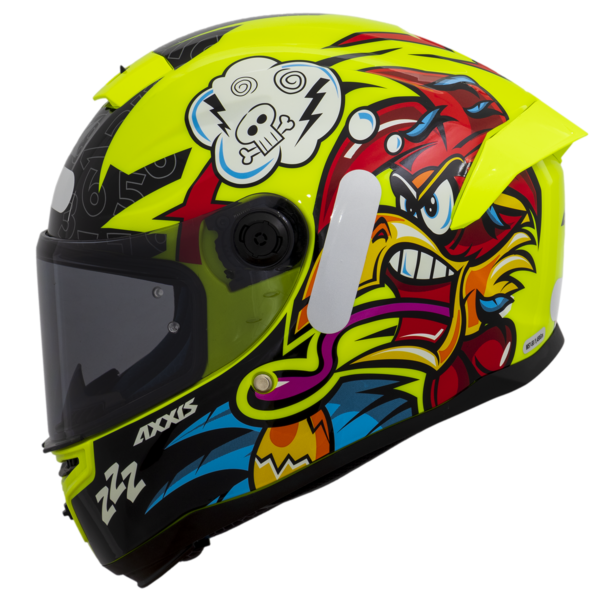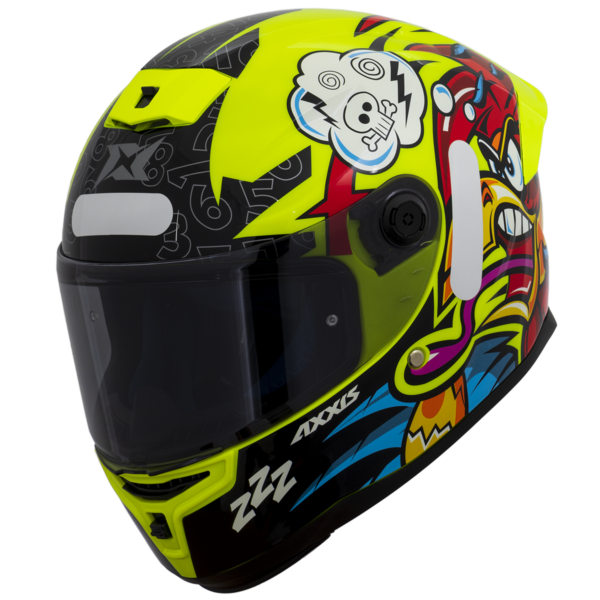 El casco Axxis Hummer es un integral con gráfica divertida y juvenil, ideal para quienes buscan seguridad y estilo en ciudad y carretera.