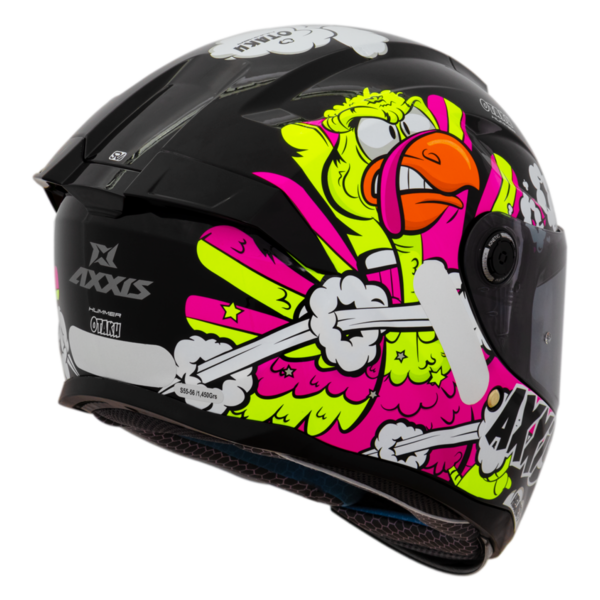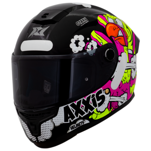 El casco Axxis Hummer es un integral con gráfica divertida y juvenil, ideal para quienes buscan seguridad y estilo en ciudad y carretera.