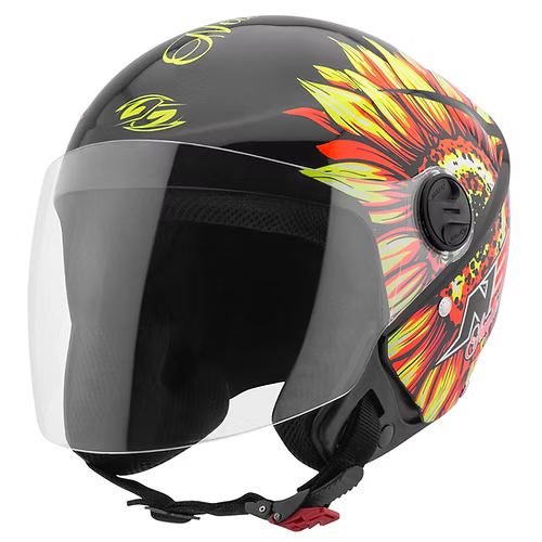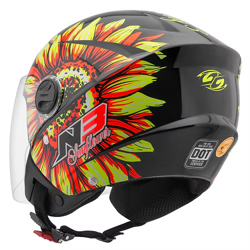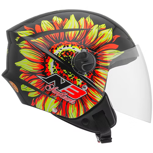 El casco Pro Tork New Liberty Three Sunflower es un modelo abierto (jet) con diseño gráfico exclusivo. Ofrece comodidad, ventilación y practicidad, ideal para el uso urbano diario.