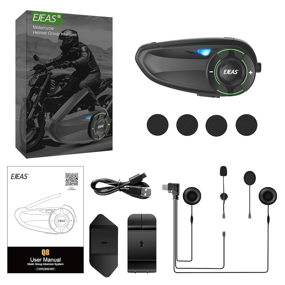El intercomunicador Ejeas Q8 Mesh es un sistema de comunicación avanzado para motociclistas, con tecnología Mesh y Bluetooth dual. Permite conectar múltiples pilotos con gran estabilidad y alcance, ideal para viajes en grupo.